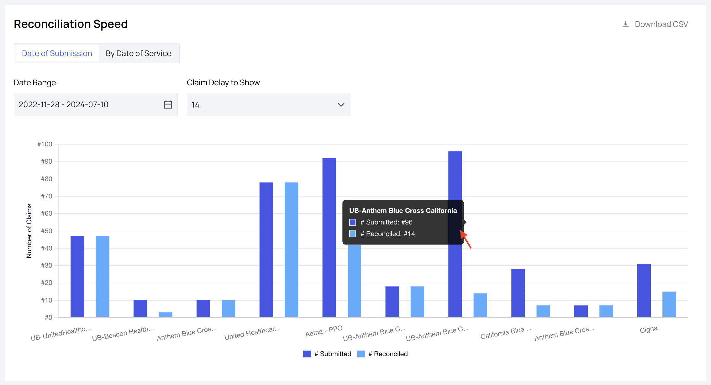 - Insurance Paid RateThe higher the better. This number shows the percentage of claims successfully paid, as well as how that number compares with the previous period.