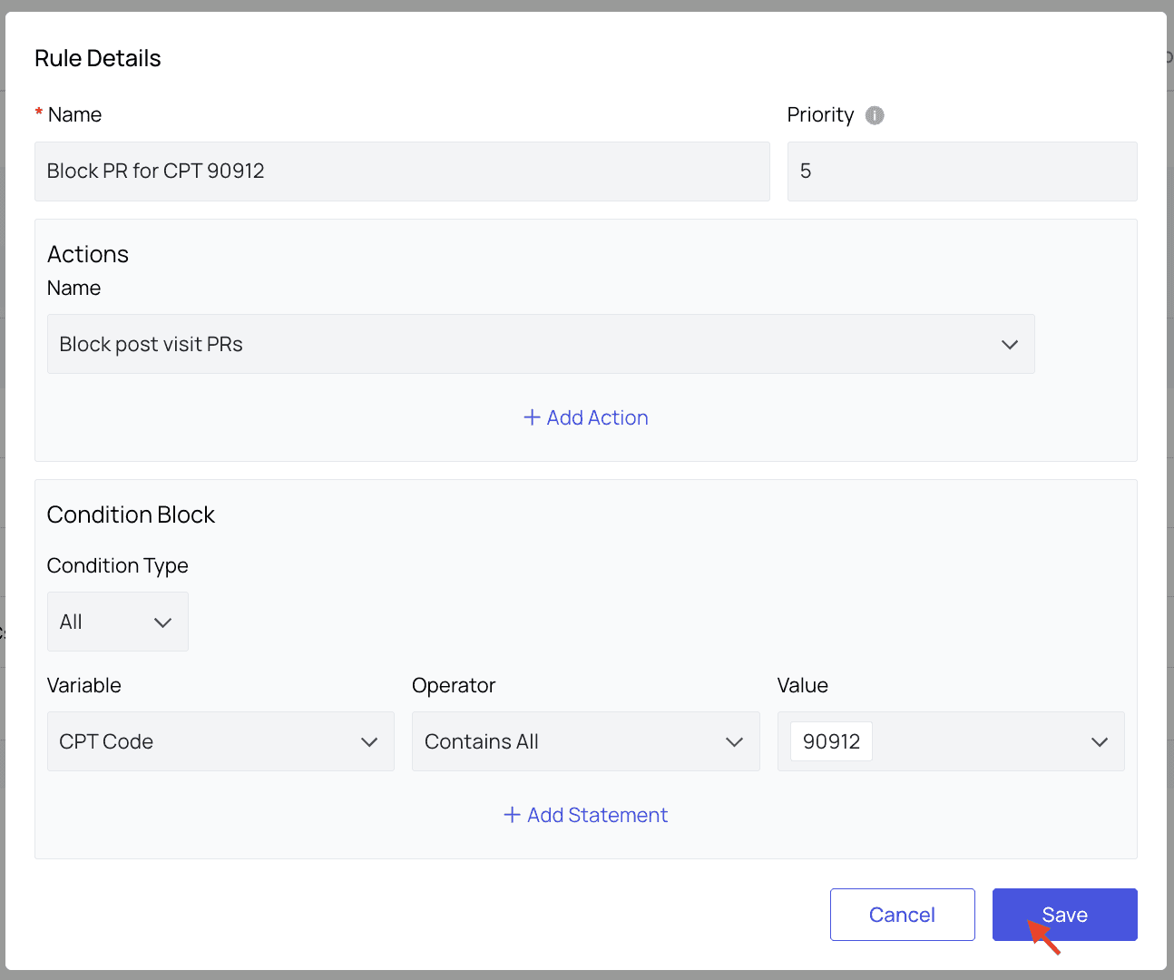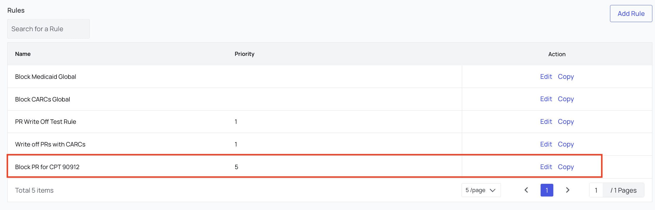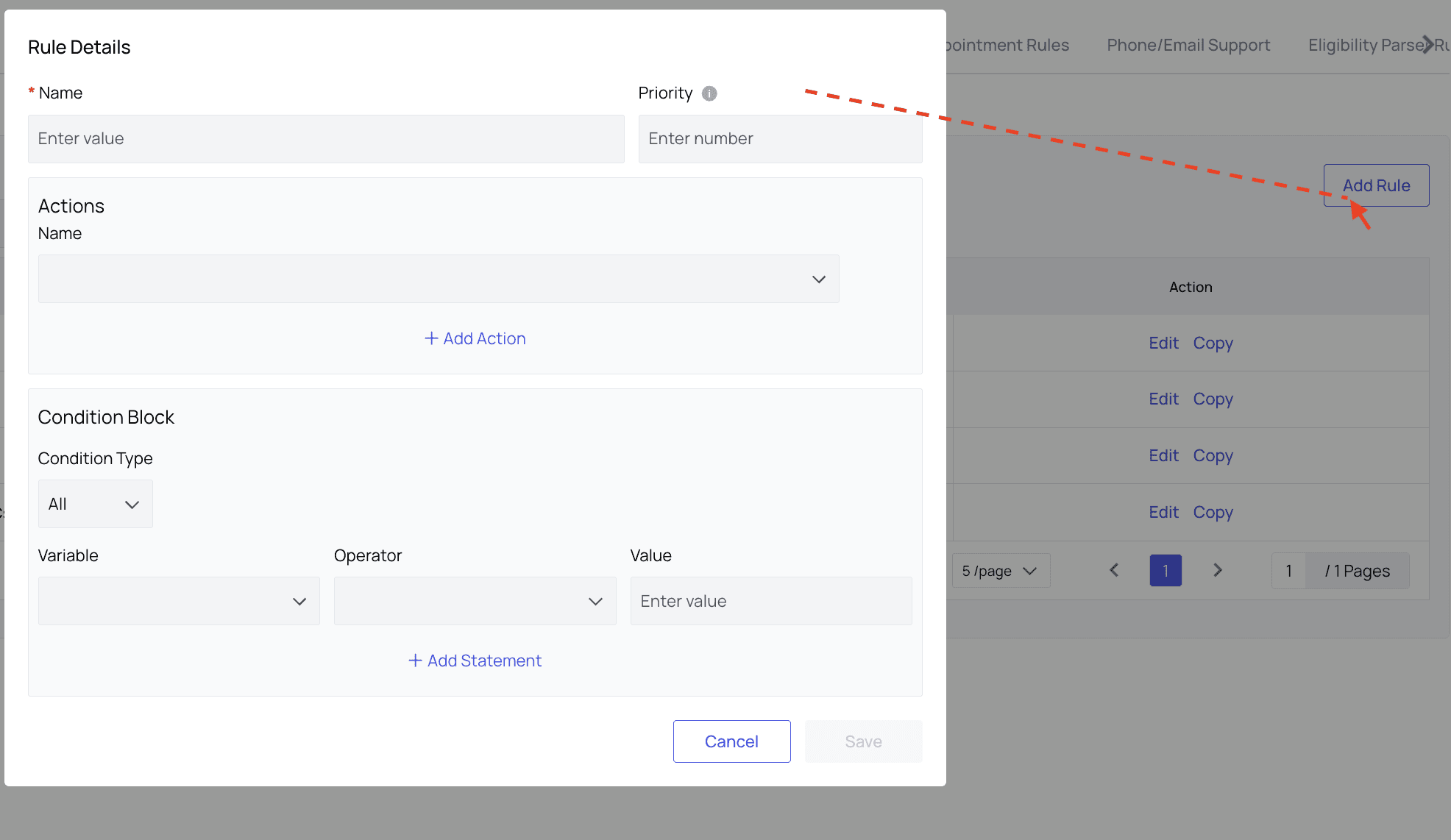 Go to the Blocked PR Rules tab in PR Settings. Here, you will see all existing rules listed. To edit these rules, or copy their settings to create a new rule, you can click the buttons in the Action column. For this example, we’ll click ‘Add Rule,’ and the new rule modal will appear.
