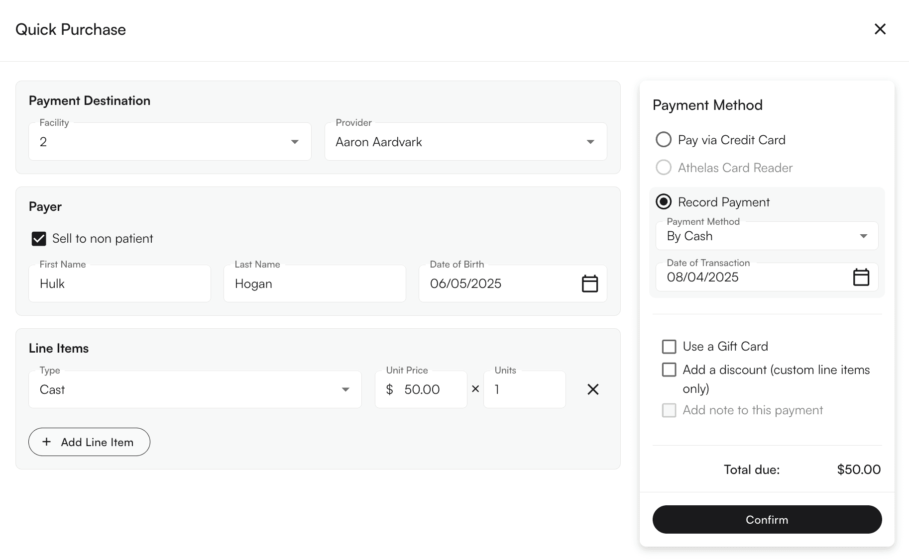 Sell to non patient box and fill in the customer’s information. For this example, the customer will pay in cash.