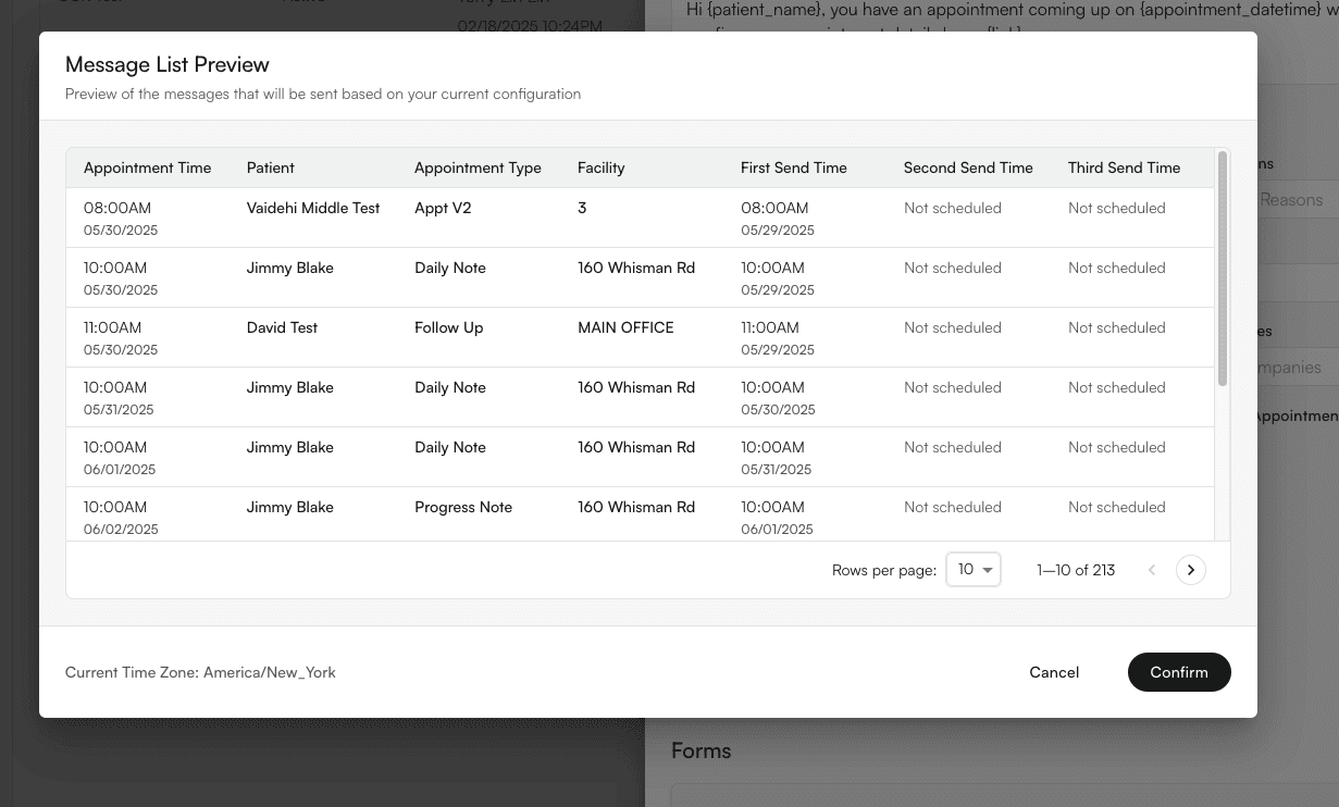 Using the workflows page, you are able to customize exactly which appointments get sent specific intake forms and even configure the message and time when they’re sent out. At the top of the page, you’re able to name your workflow and then configure the specifications which the intake forms and appointment reminders will be sent out.