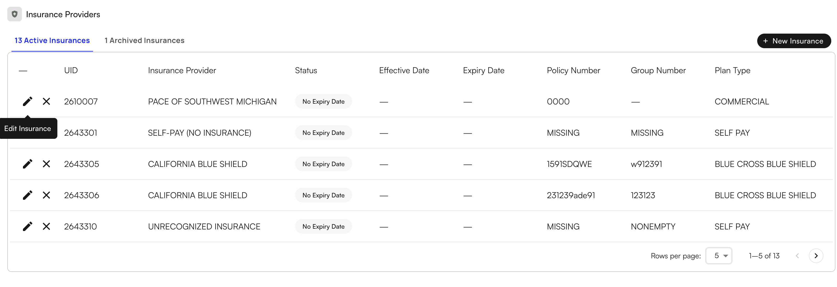 To add Self-Pay as an insurance, type in “Self Pay” into the Insurance Company field. Upon selection, the insurance details will disappear and leave only “Self-Pay (No Insurance)”