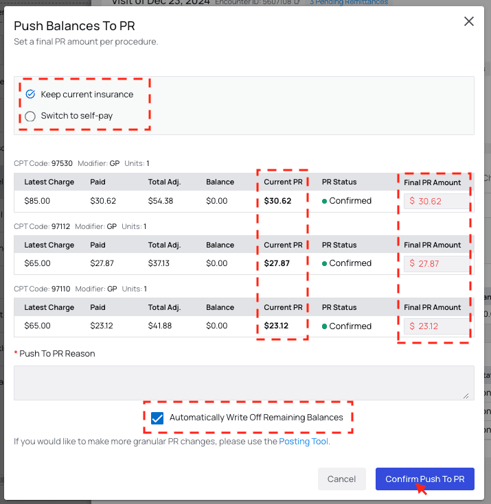 - In either case, the balance will now be equal the total PR. This will cause it to be sent to the patient.