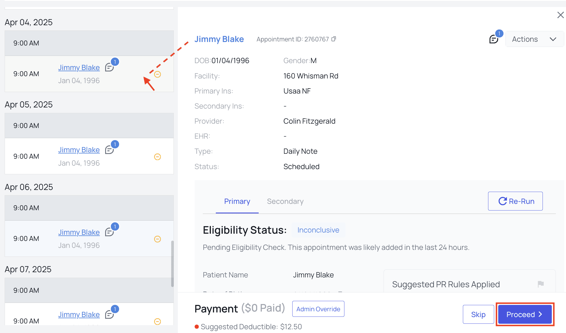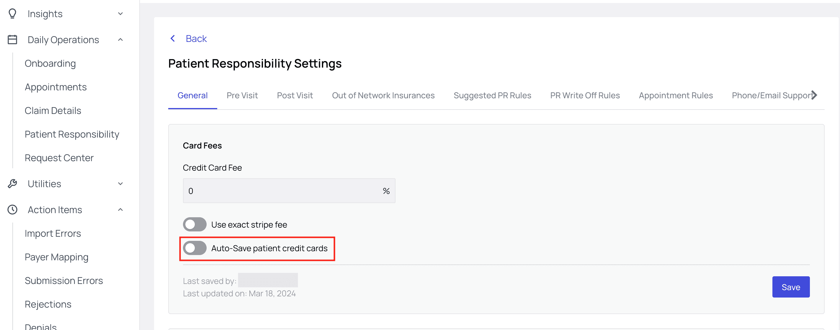 - Toggle Card Saving on Individual PaymentsFrom the Appointments page, choose the patient you would like to charge. Then, click
