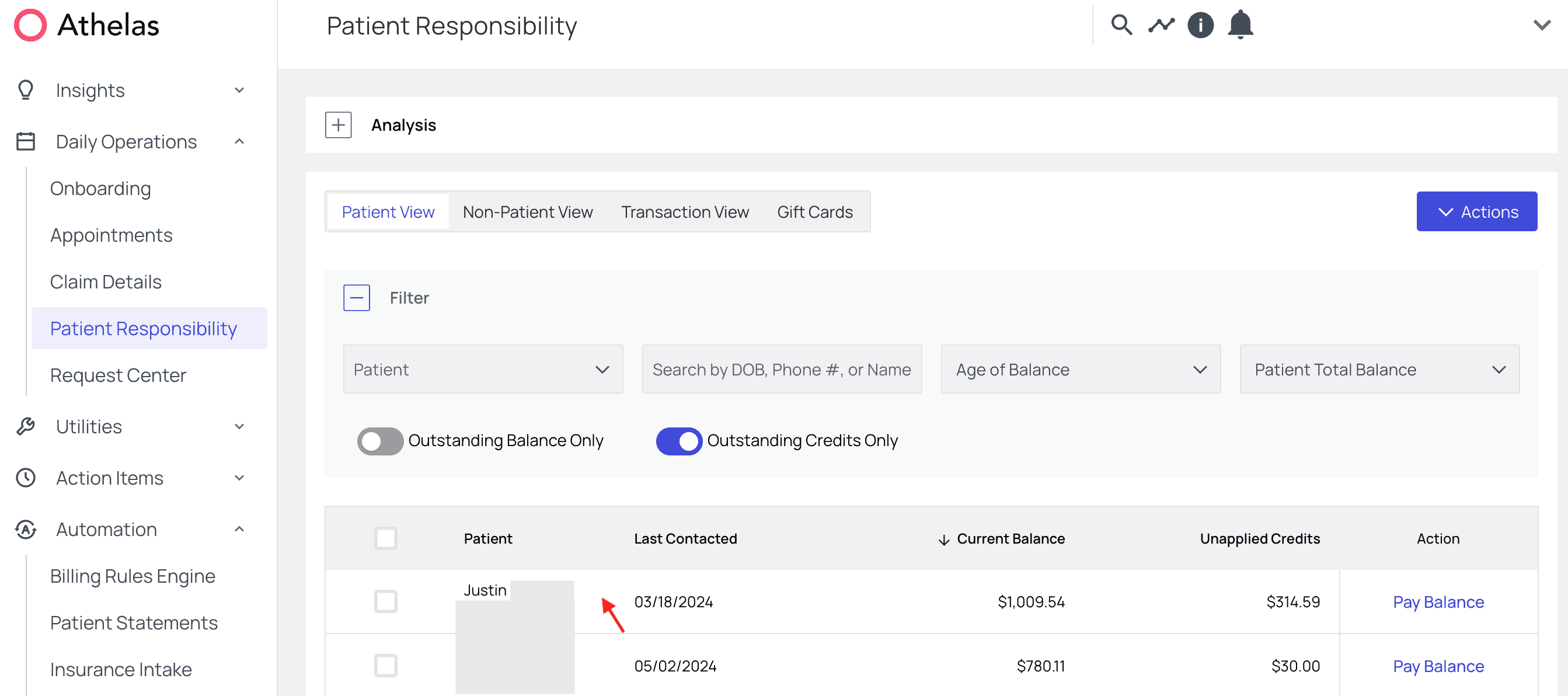 From the Patient Responsibility page, navigate to the Patient View tab and choose a patient.