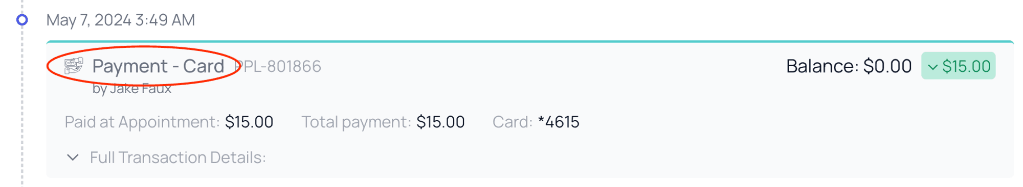 Next, what type of event the card represents is shown. For example a Payment, or Remittances Received, or Updated Balance for the patient’s account.