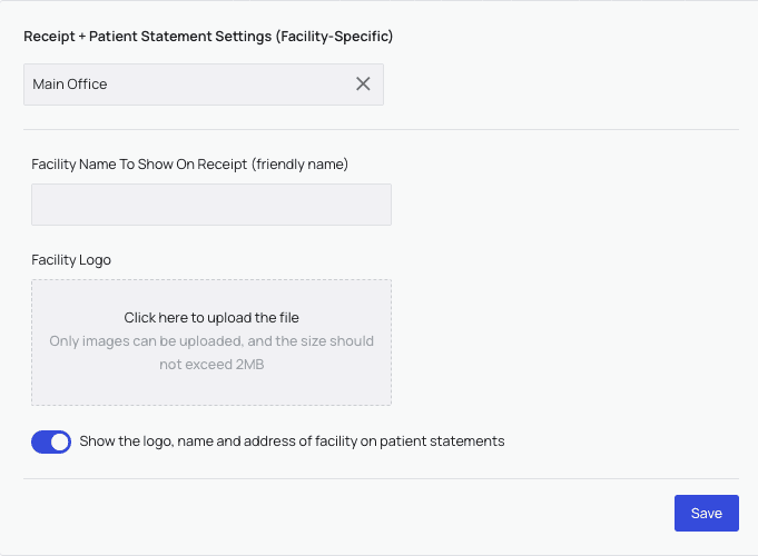 - Be sure to add your facility name and logo to statements in PR Settings, under the ‘General’ tab.