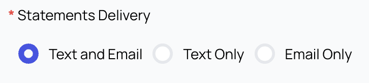 - Set the methods of statement delivery (email, text message, or both)
