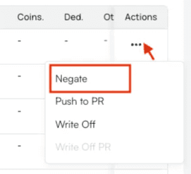 • Now, rather than archiving the unposted remittance as shown in the previous situation, we’ll negate the first and post the second. Click the three dots corresponding to the first remittance under the Actions column. Choose Negate.