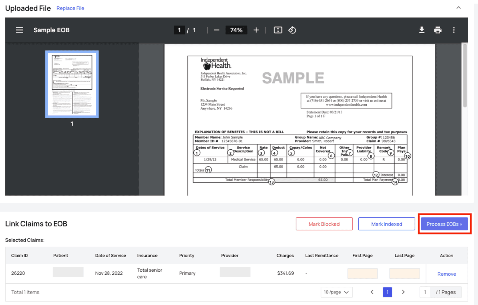 • SubmittingThese EOBs are currently being submitted and will be done soon, depending on the number of associated claims.