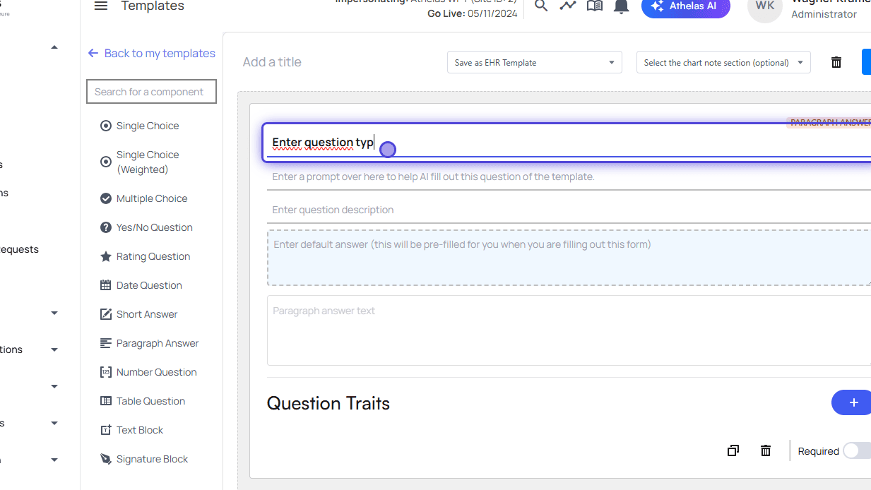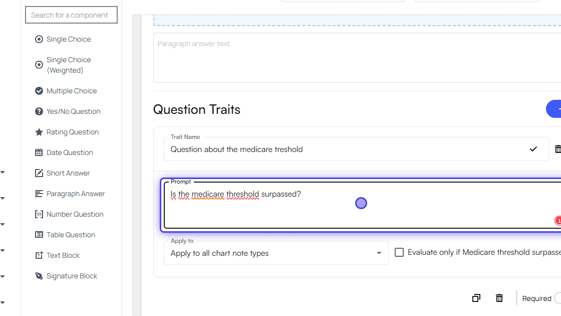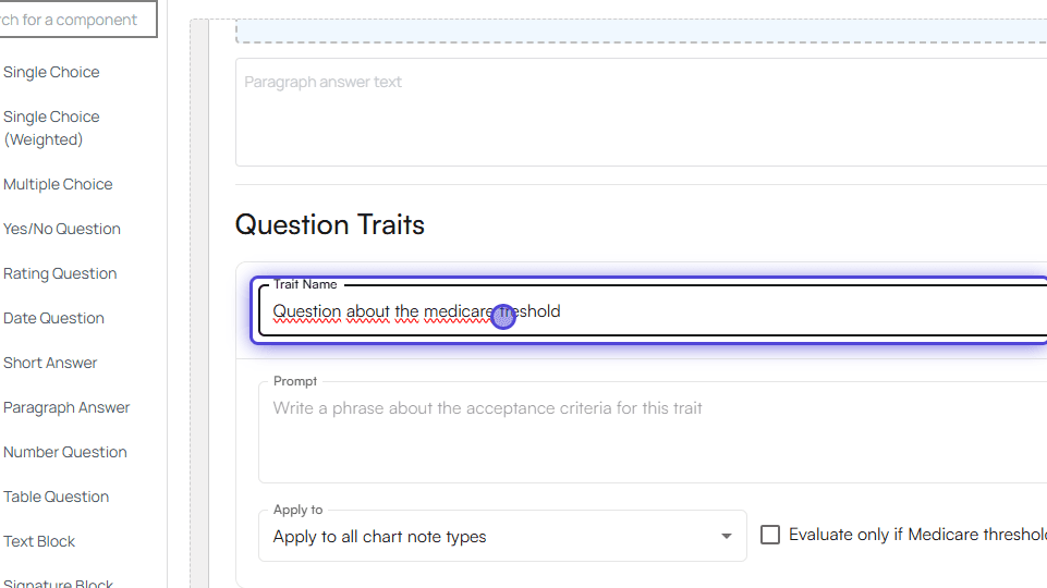 Only “Paragraph Answer” supports question traits at the moment