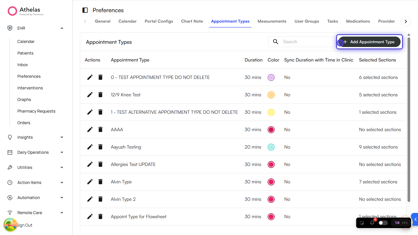 1. Go to EHR Preferences > Appointment Types