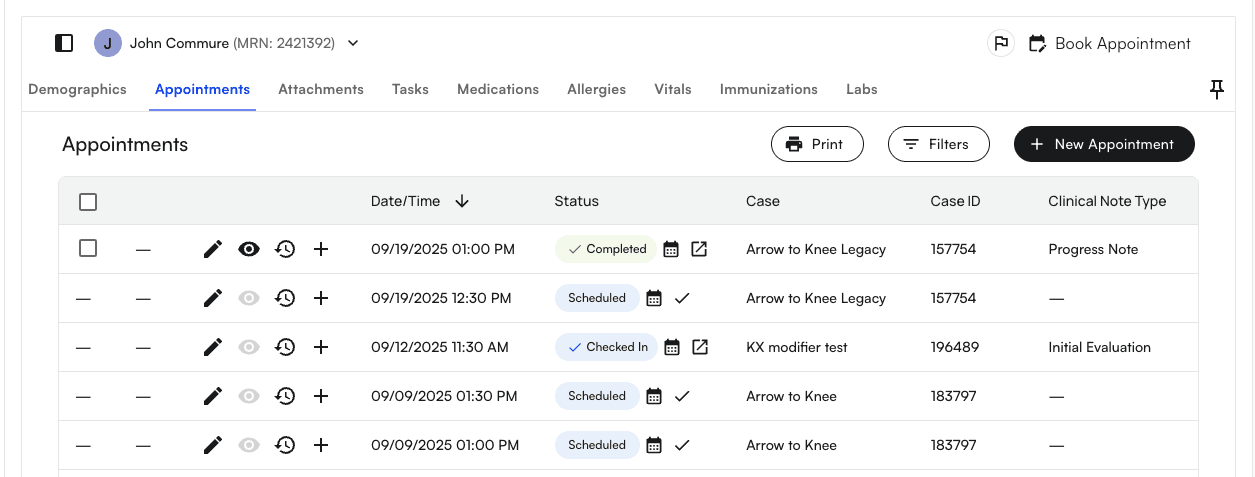 1. Go to a Appointment section of any selected Patient