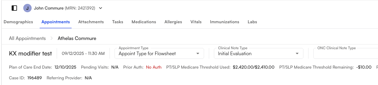 • Compliance: Medicare requires KX on claim lines once the beneficiary’s annual therapy threshold is exceeded (PT+SLP combined, and OT separately). Without KX, claims at/above the threshold can be denied.