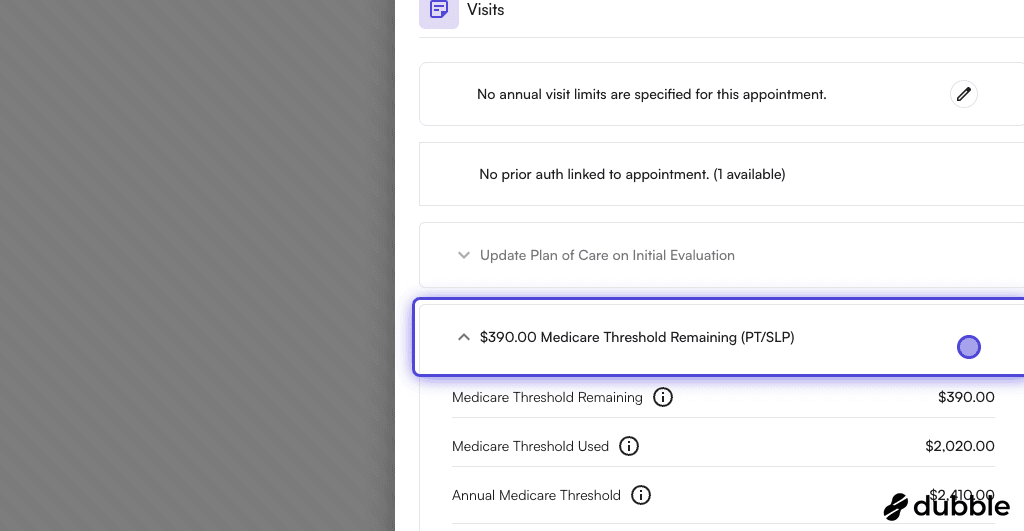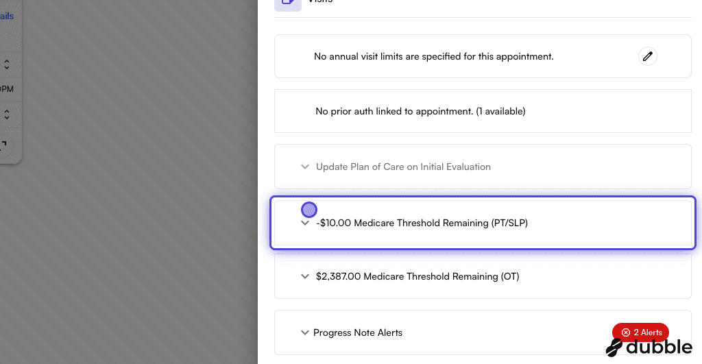 1. On Appointment Details drawer > visits, expand the “Medicare Threshold Remaining”