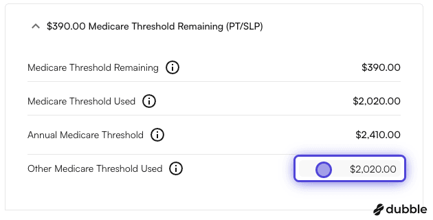 $390.00 Medicare Threshold Remaining (PT/SLP)