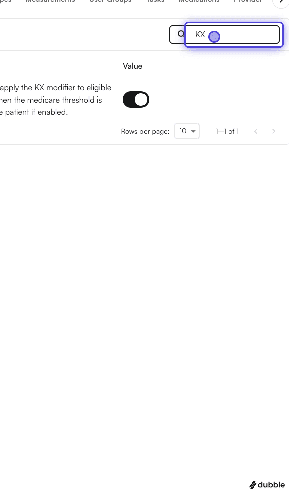 1. Select one of the procedures (i.e., CPT codes) that is KX-modifier qualified (e.g., 97110)