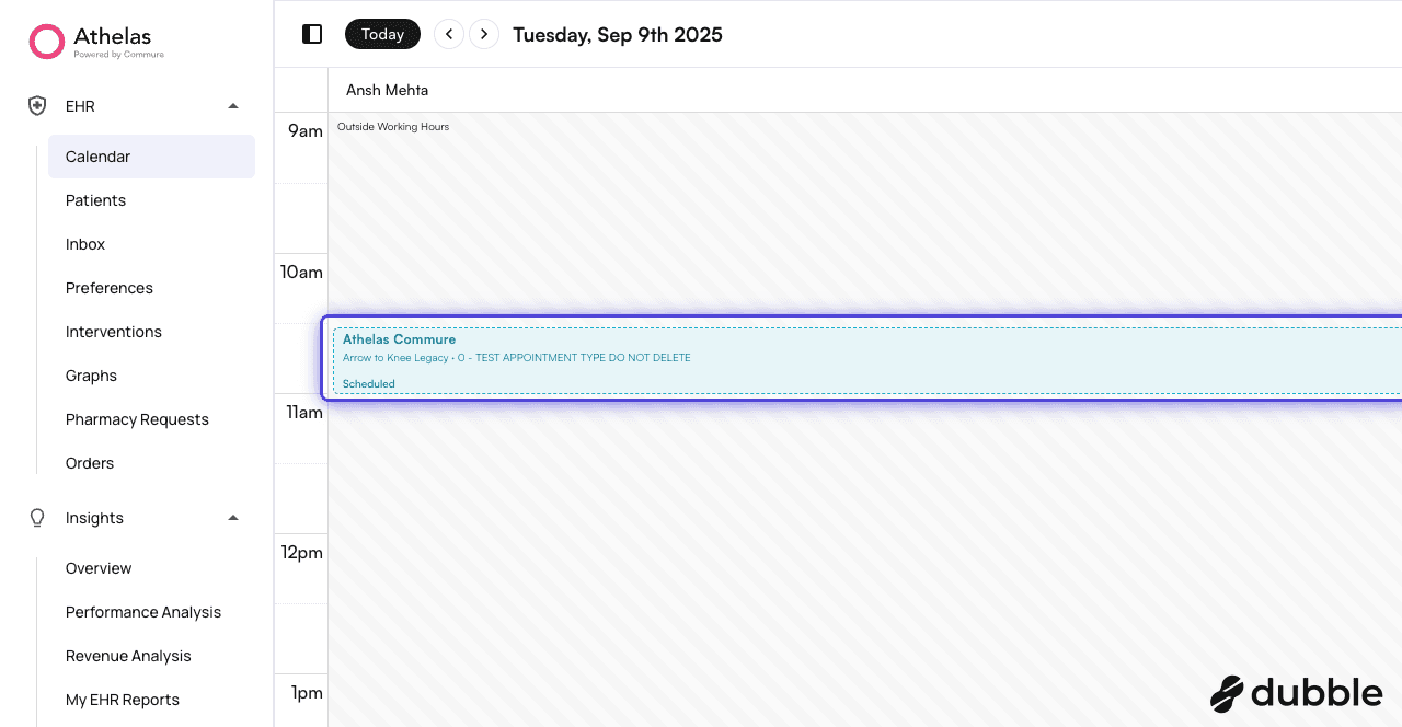 1. On EHR > Calendar, click on any calendar cell.