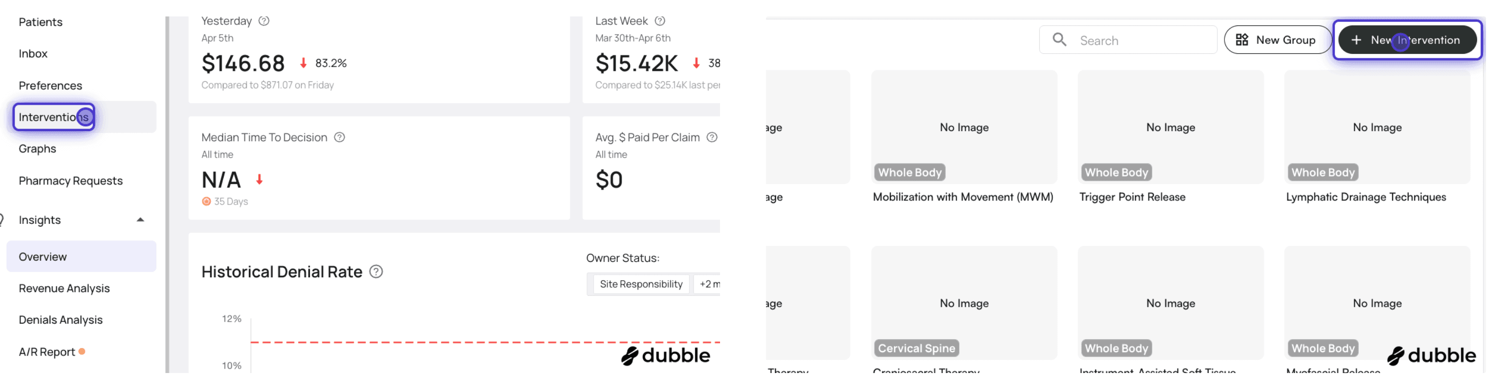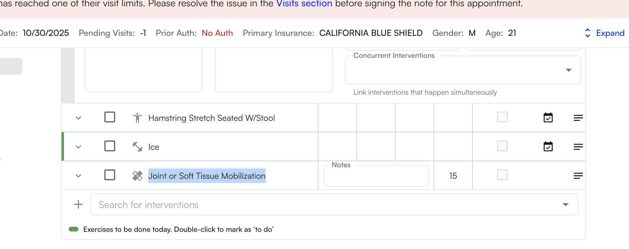 • Add an intervention - “+Add Interventions” through the Intervention manager in the nav bar, or within the chart note itself