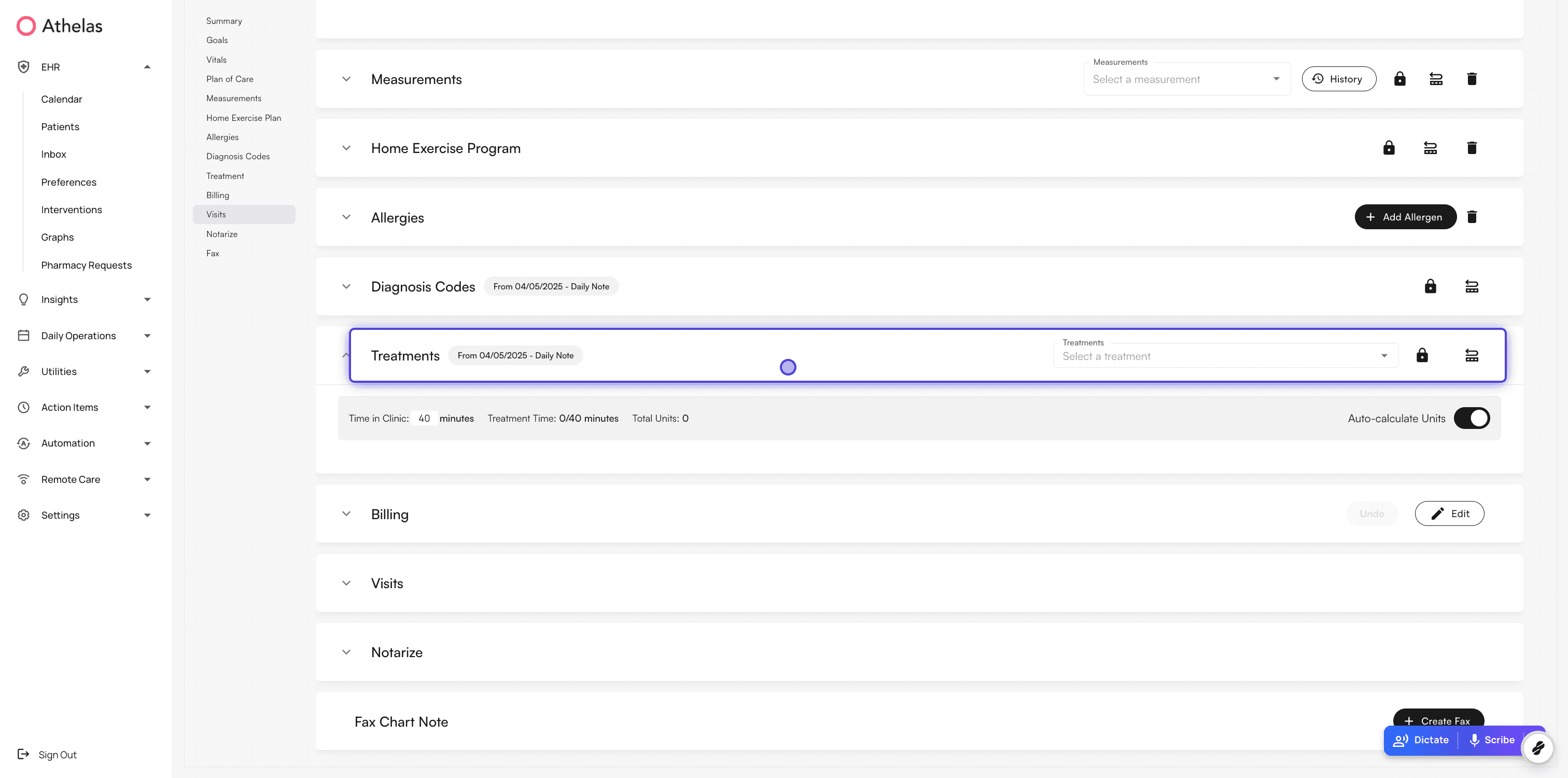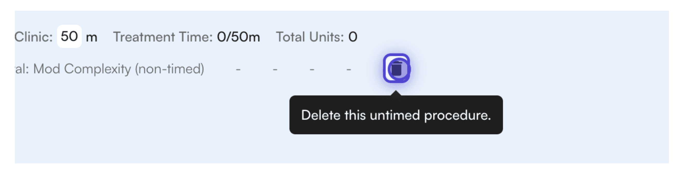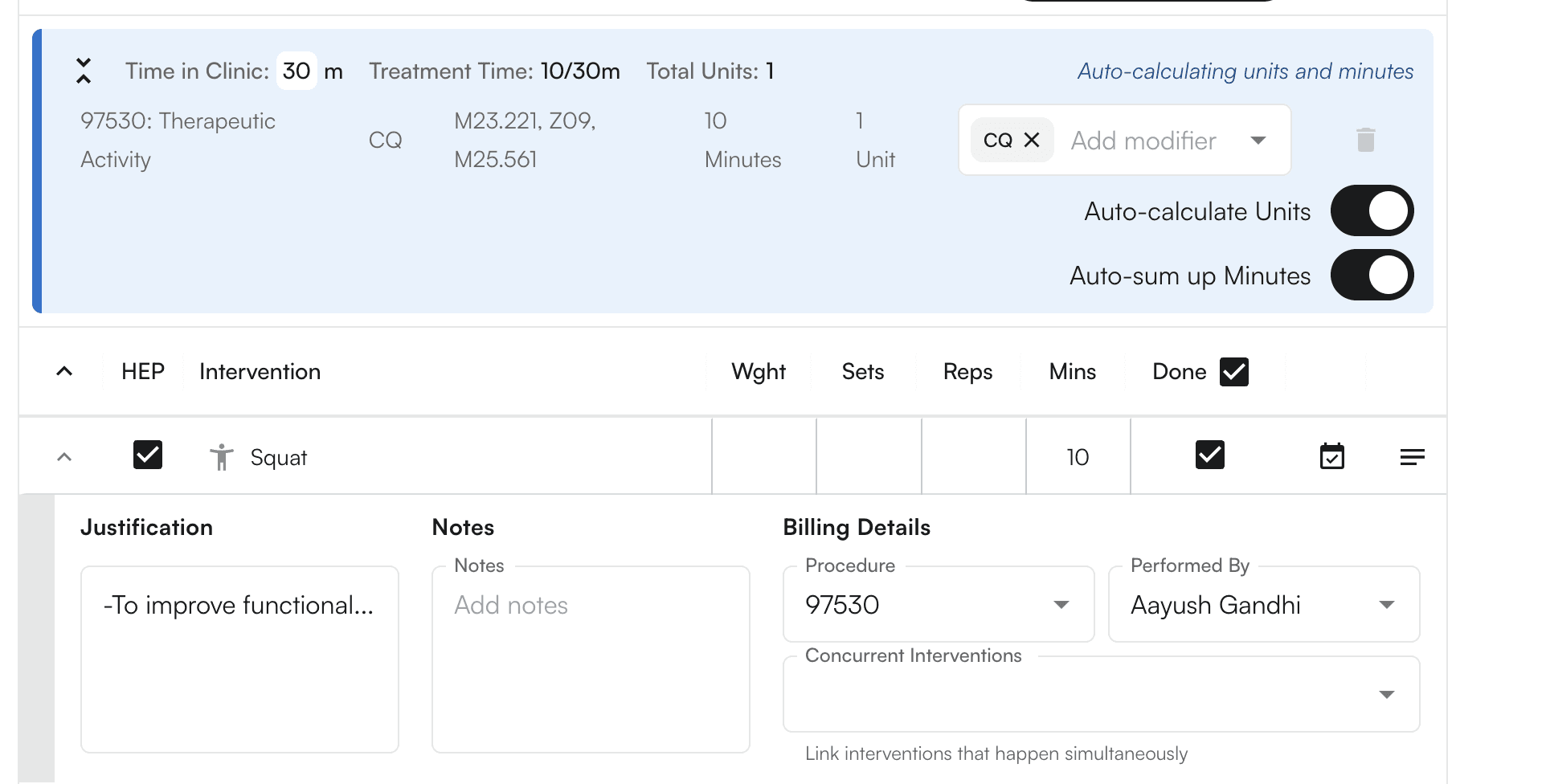 • You must select a procedure code in order to mark an intervention as done, and the treatment time and units will auto populate