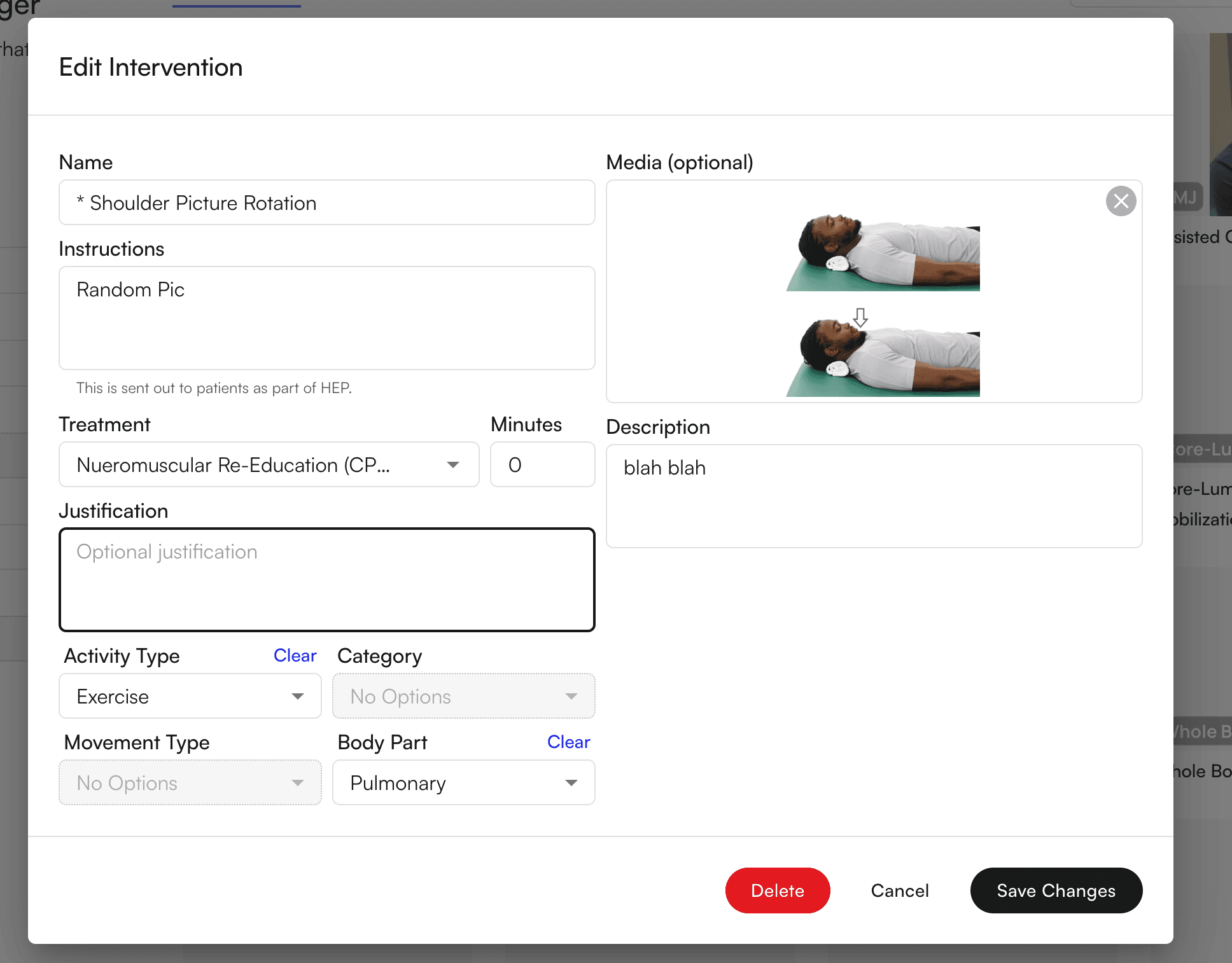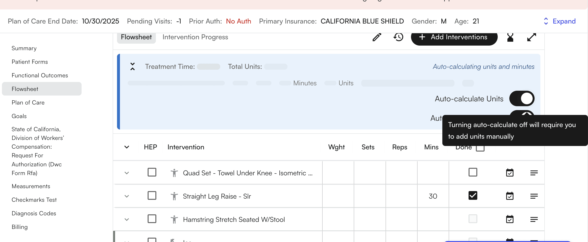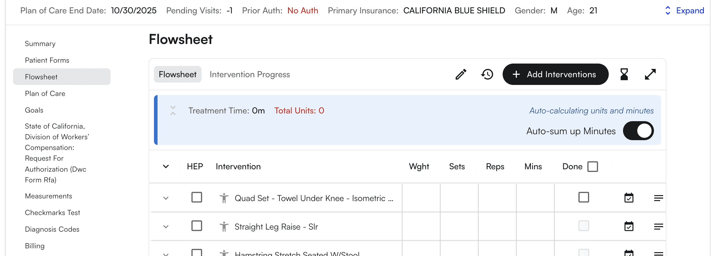 • When editing an Intervention, you can also auto-populate flowsheets with intervention details and exercise parameters