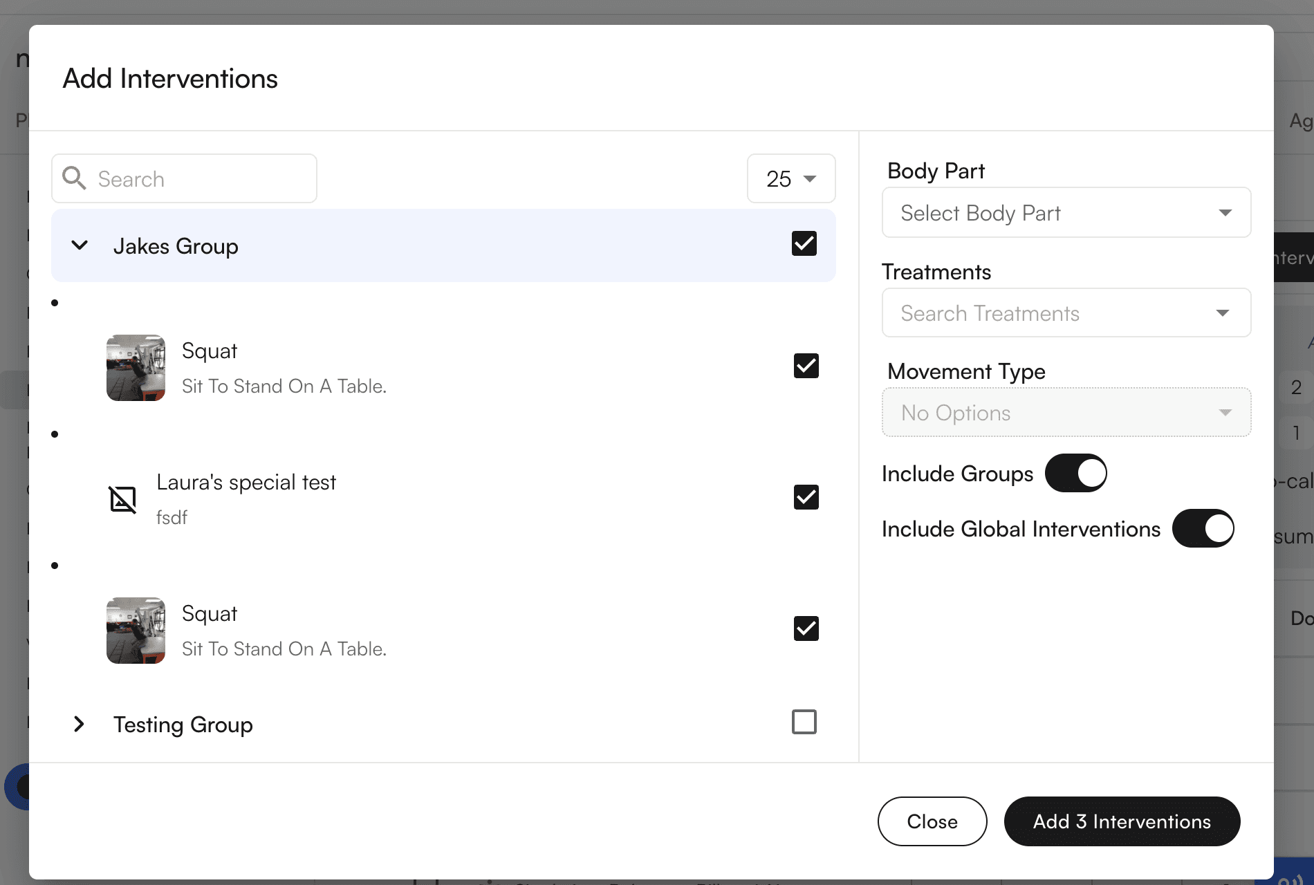 Clicking the add interventions button will add all selected interventions to the flowsheet (currently in the order in which they were selected).