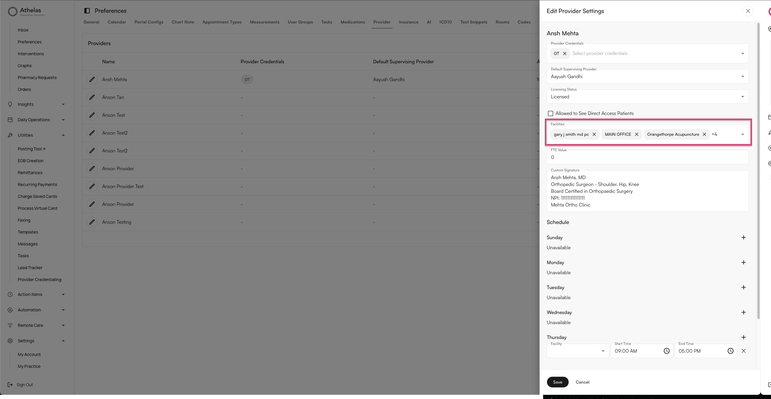 • Provider should have the facilities they want to prescribe forEHR > Preferences > Provider