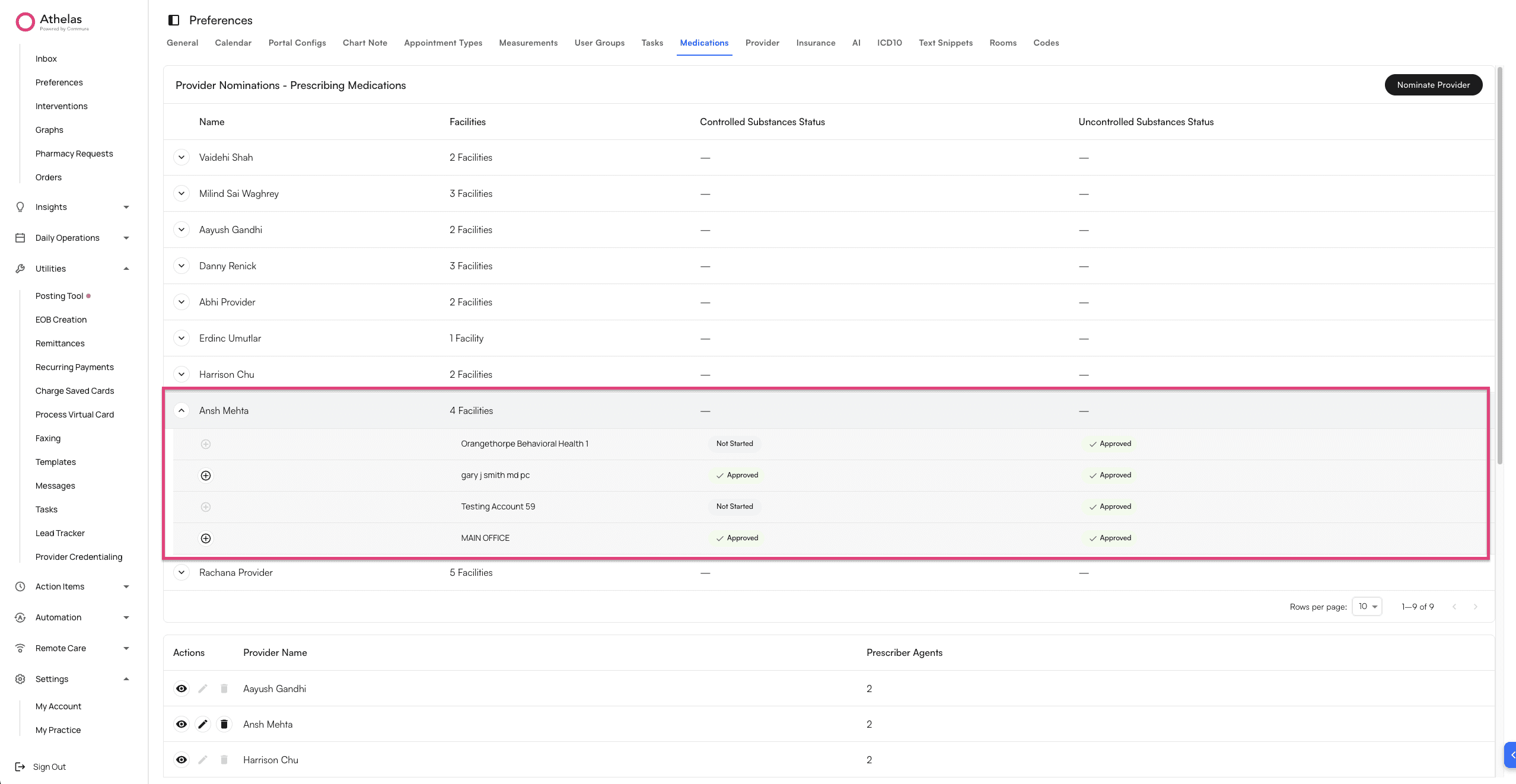 • Provider should be nominated for the facilities they want to prescribe medications -EHR > Preferences > Medications > Provider Nominations