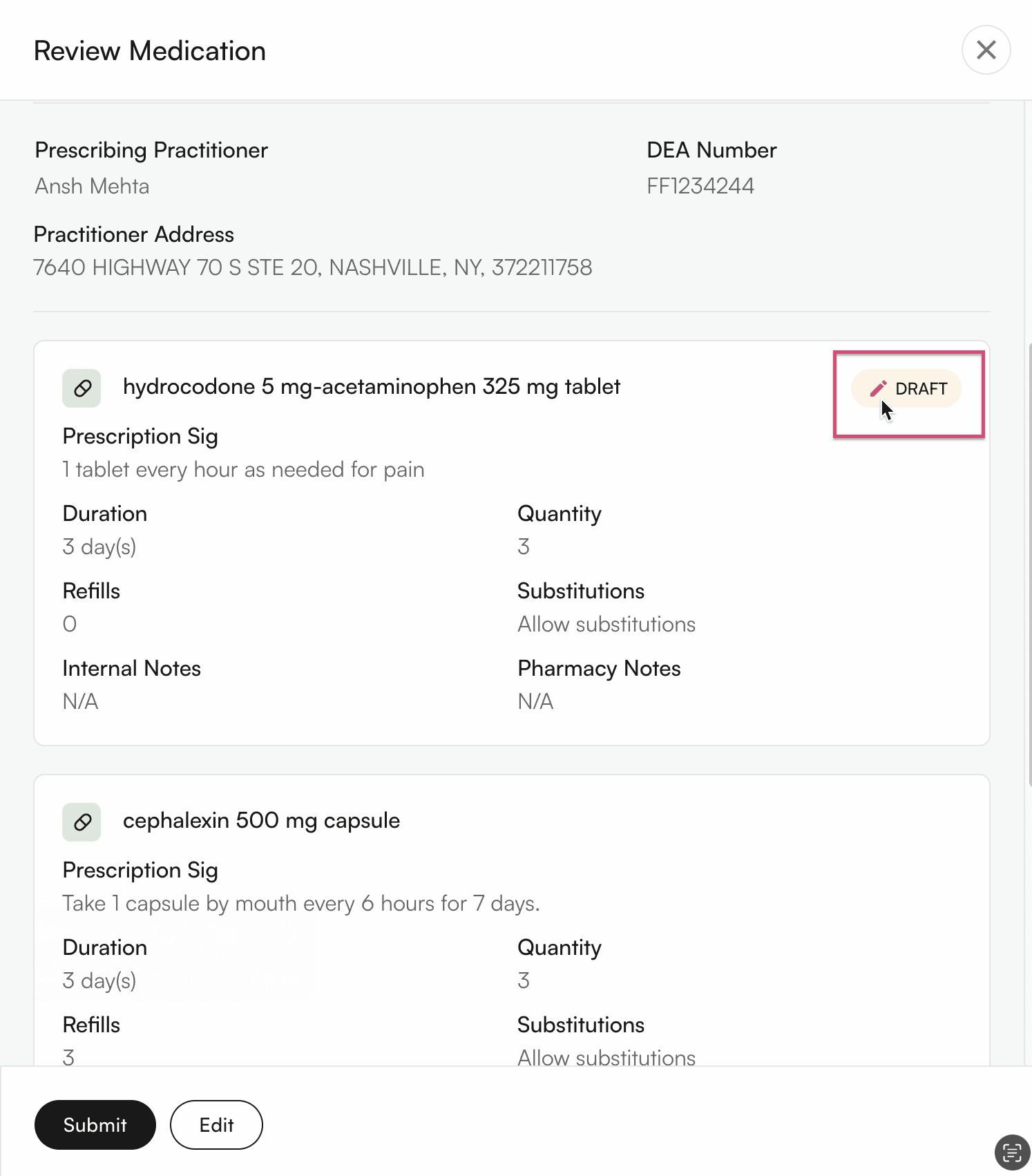 Providers can also make changes to draft, but they cannot save drafts, they can only prescribe them directly.